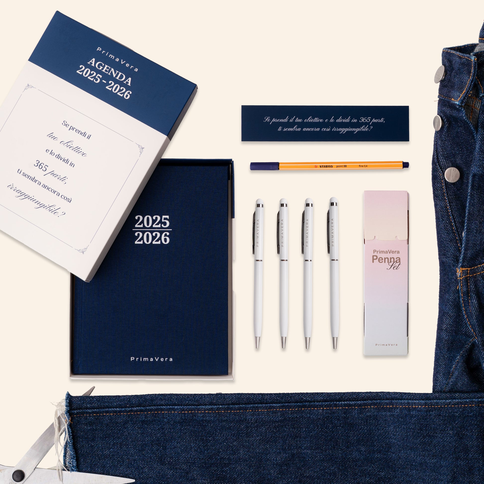 ✔️Penne Set – 4 penne a sfera con retro touch per mettere nero su bianco impegni, svaghi e riflessioni in agenda. Avete aspettato un anno per utilizzare di nuovo la PrimaVera Penna: nate come omaggio, sono diventate un prodotto a sé per il loro colore intenso e la loro scorrevolezza. Un must have per chi ancora, come noi, non può fare a meno della scrittura su carta.