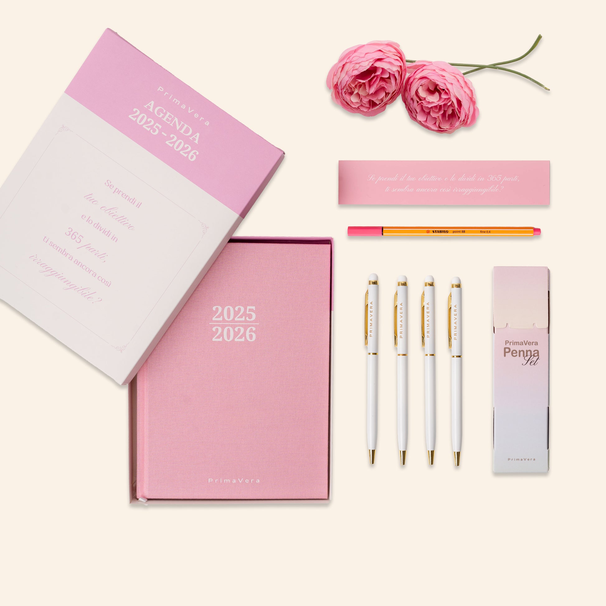 ✔️ Penne Set – 4 penne a sfera con retro touch per mettere nero su bianco impegni, svaghi e riflessioni in agenda. Avete aspettato un anno per utilizzare di nuovo la PrimaVera Penna: nate come omaggio, sono diventate un prodotto a sé per il loro colore intenso e la loro scorrevolezza. Un must have per chi ancora, come noi, non può fare a meno della scrittura su carta.