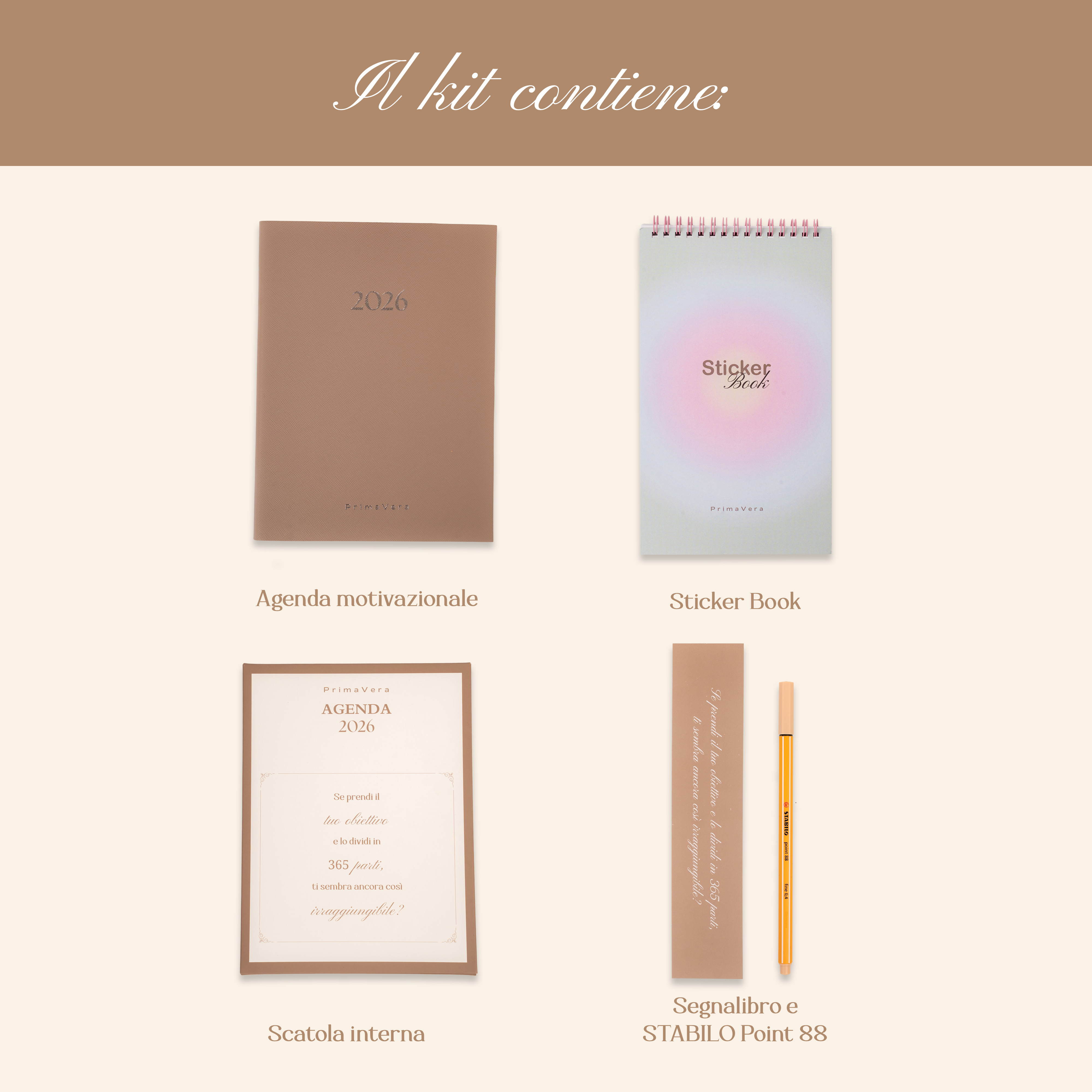 KIT PrimaVera Agenda 2026 + Sticker Book
