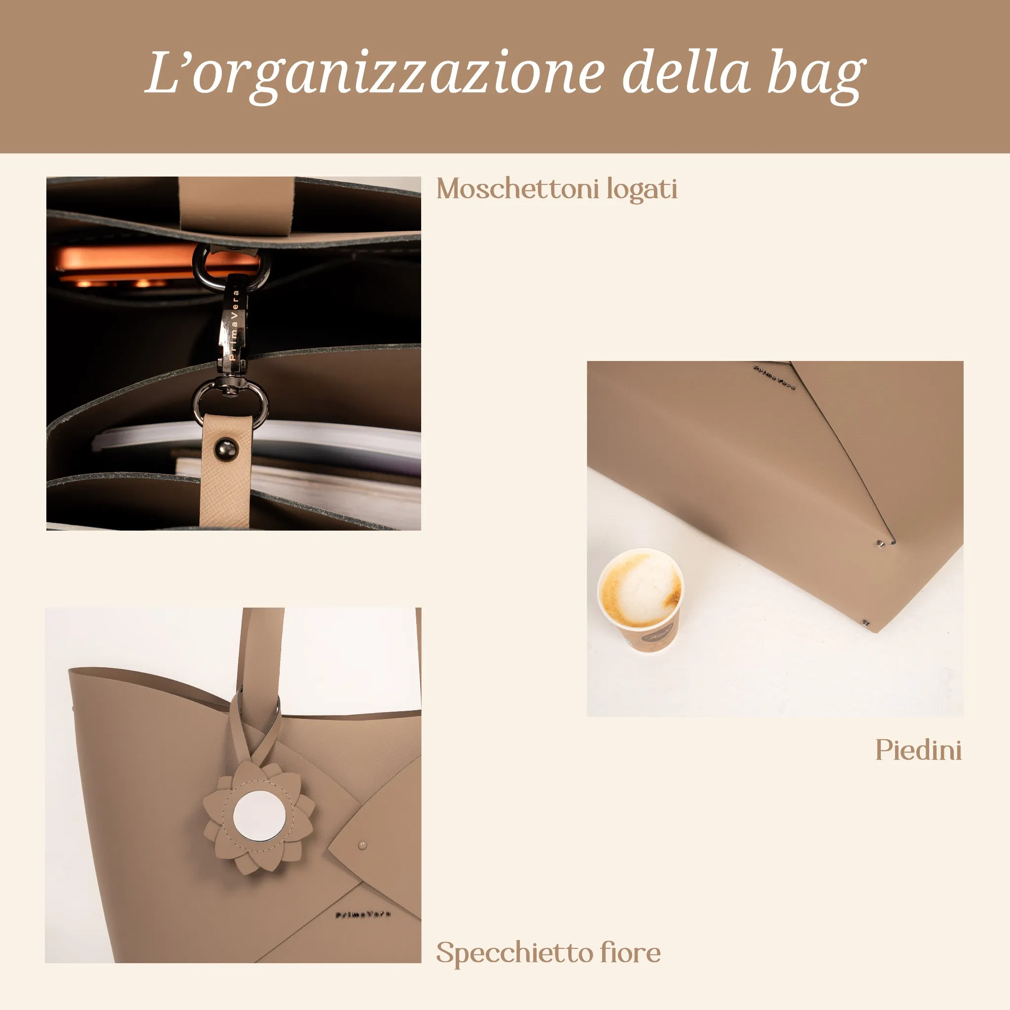 Il design interno permette di portare con te tutto ciò che ti serve, con tasche organizzative pensate per semplificare la tua routine. Il design esterno ti farà innamorare di PrimaVera Bag e nessuna borsa potrà più sostituirla. Scoprili: